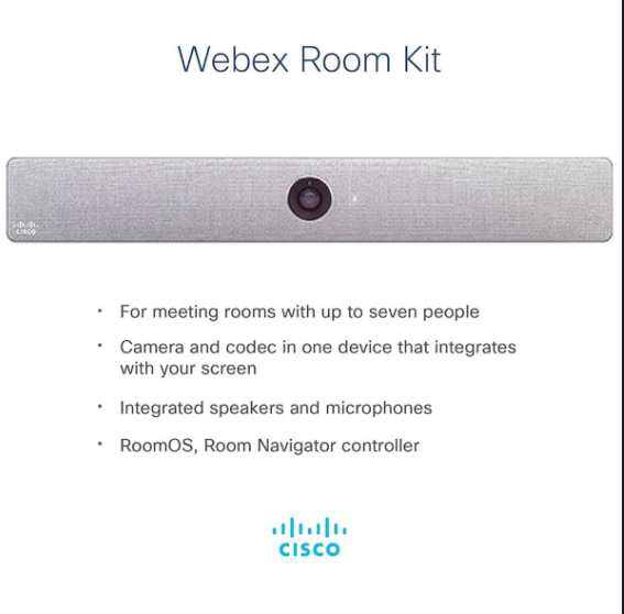 Webex® Room Kit delivers the unmatched video and audio experience customers have come to expect from Cisco. In addition, new capabilities enable even smarter meetings, smarter presentation capabilities, and smarter room and device integrations—further removing the barriers to usage and deployment of video in small to medium-sized rooms.